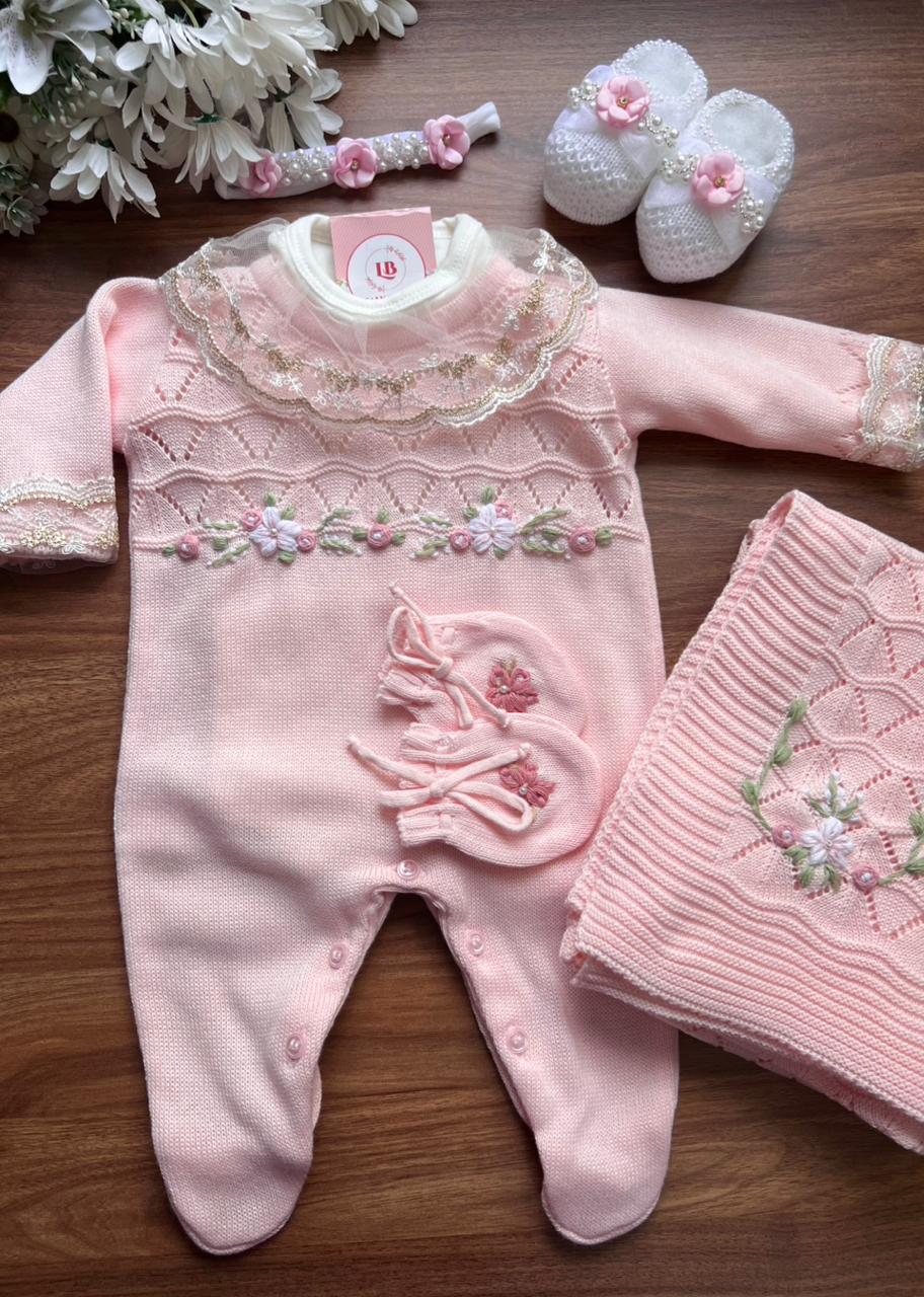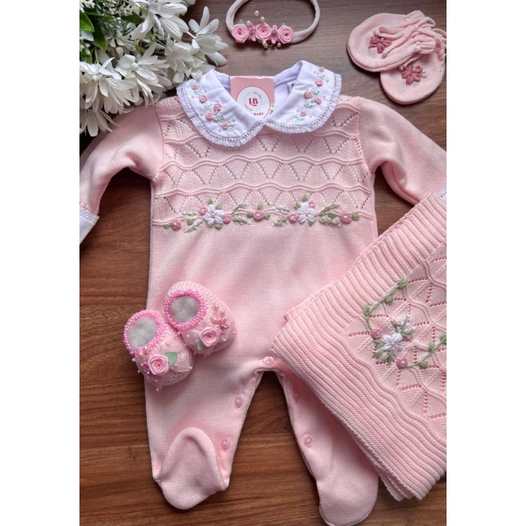 Body 100% algodão.Saída Duda com Bordado à mão – Rosa Bebê