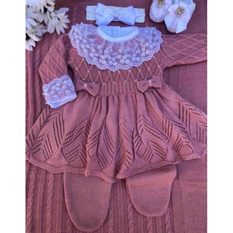 Nossa saída de maternidade é ideal para receber seu bebê com estilo e conforto. Tamanho único, veste bebês de 0 a 2 meses. O kit é composto por 3 peças, não acompanha o body (renda gola e punho fazem parte do body).