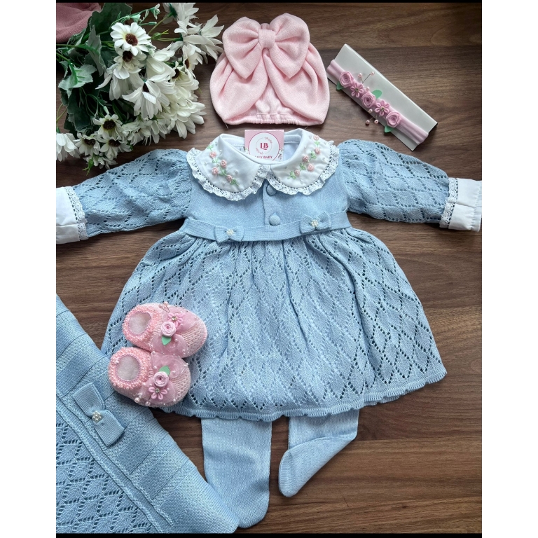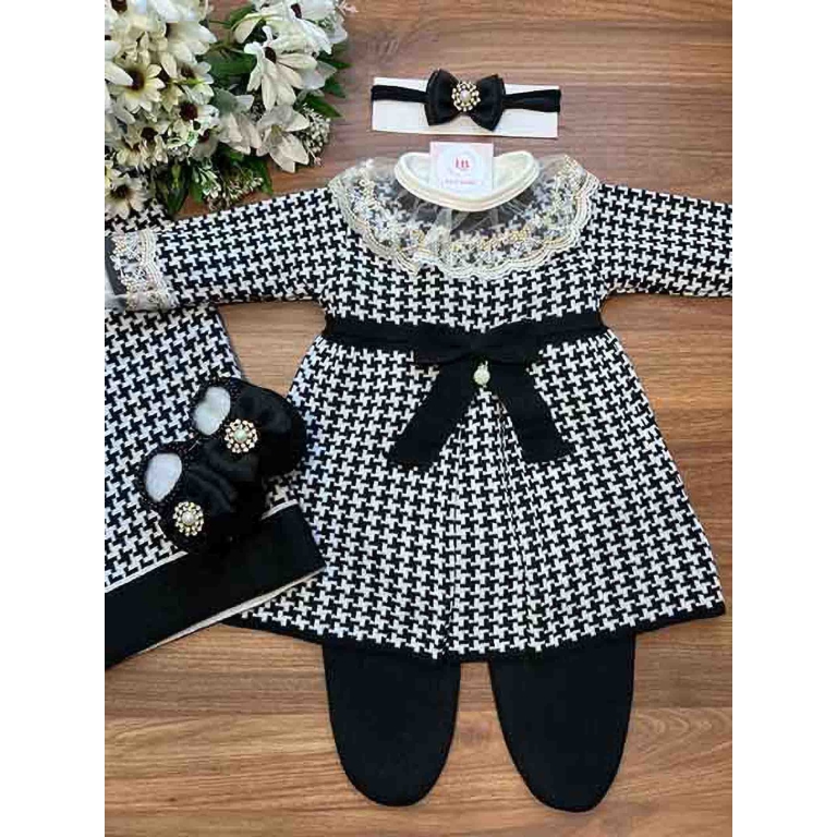 Nossa saída de maternidade é ideal para receber seu bebê com estilo e conforto. Tamanho único, veste bebês de 0 a 2 meses. O kit é composto por 2 peças, não acompanha o body (renda gola e punho fazem parte do body).