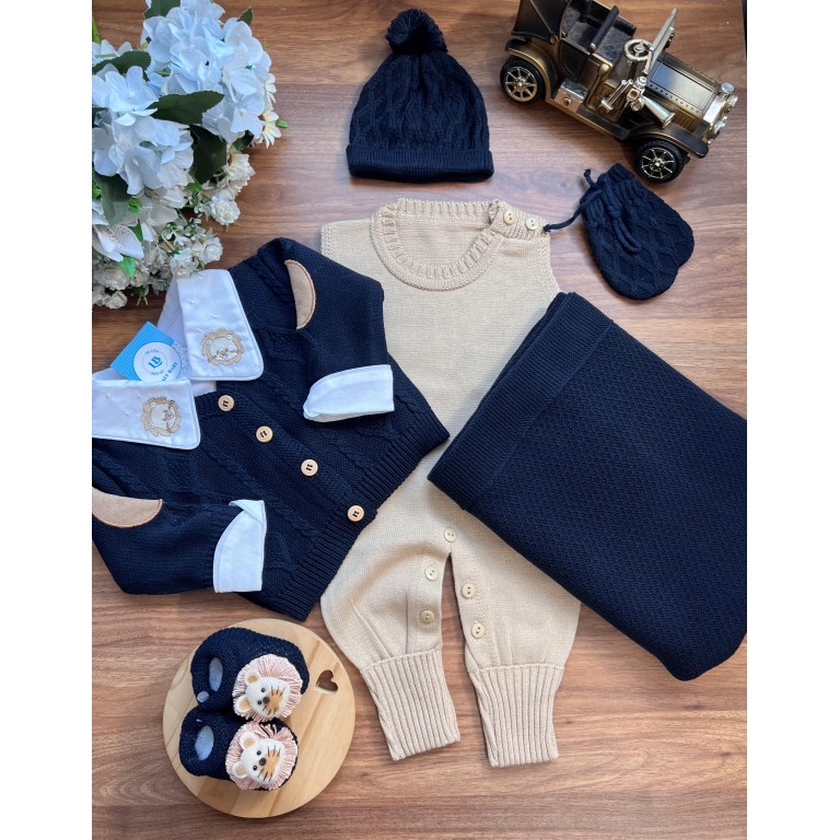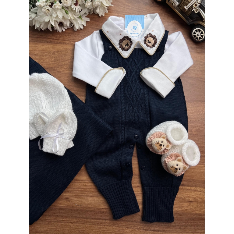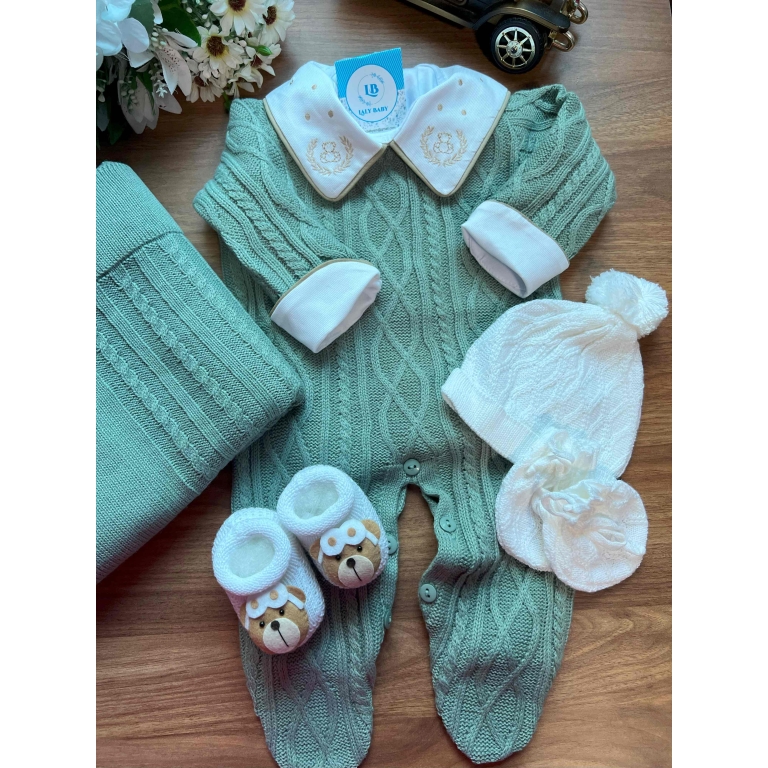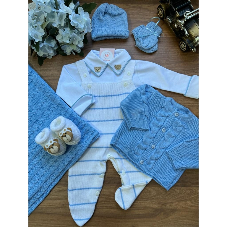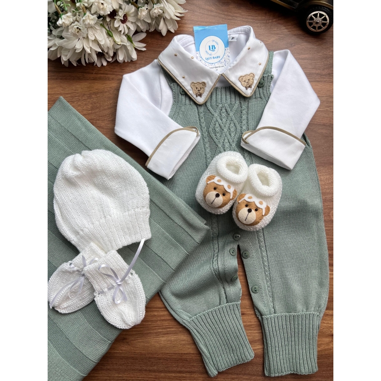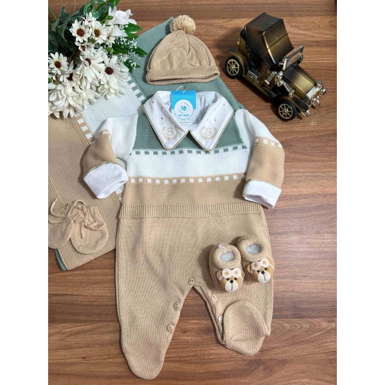 Nossa saída de maternidade é ideal para receber seu bebê com estilo e conforto. Tamanho único, veste bebês de 0 a 2 meses. O kit é composto por 3 peças, não acompanha o body (detalhe gola e punho fazem parte do body).
