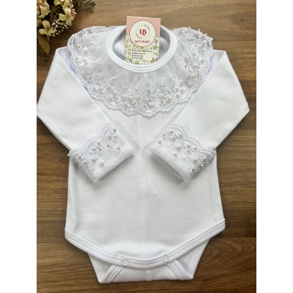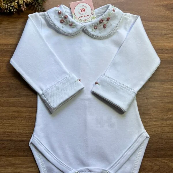 Body 100% algodão.Saída Malu com Bordado à mão – Lilás