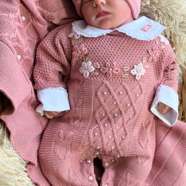 Nossa saída de maternidade é ideal para receber seu bebê com estilo e conforto. Toda em tricot super macio com fio antialérgico (100% acrílico). Tamanho único, veste bebês de 0 a 2 meses. O kit é composto por 2 peças, não acompanha o body (renda gola e punho fazem parte do body).