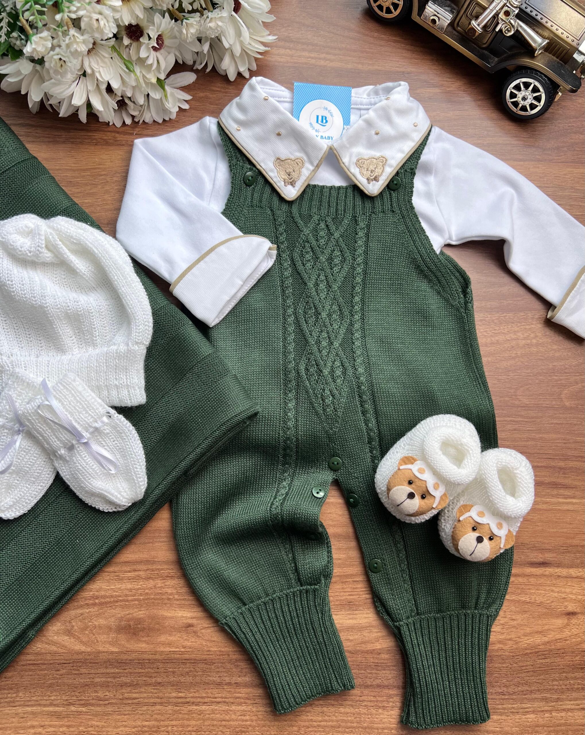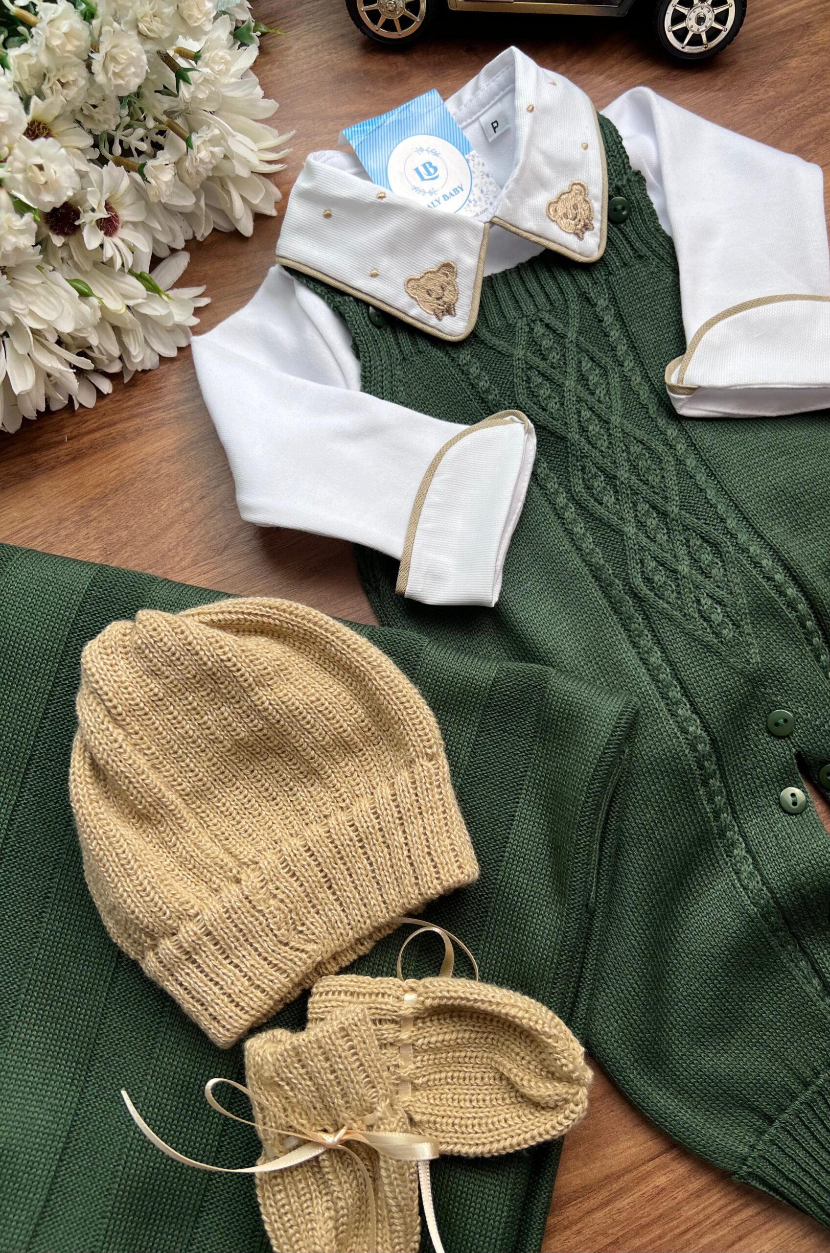 Nossa saída de maternidade é ideal para receber seu bebê com estilo e conforto. Tamanho único, veste bebês de 0 a 2 meses. O kit é composto por 2 peças, não acompanha o body (detalhe gola e punho fazem parte do body).
