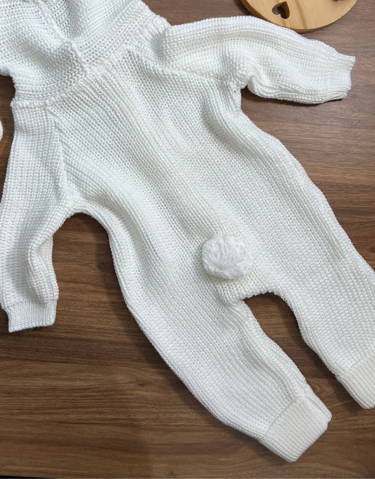 Aquele macacão que faltava para completar seu enxoval, ideal para receber o seu bebê com estilo e conforto. Todo em tricot super macio com fio antialérgico (100% acrílico). Tamanho único, veste bebês de 0 a 2 meses.