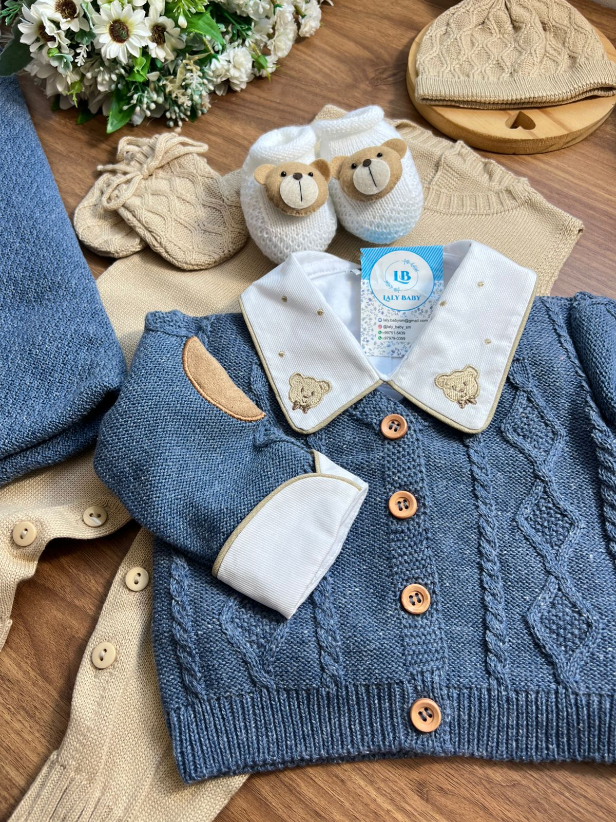 Nossa saída de maternidade é ideal para receber seu bebê com estilo e conforto. Toda em tricot super macio com fio antialérgico (100% acrílico). Tamanho único, veste bebês de 0 a 2 meses. O kit é composto por 3 peças, não acompanha o body (detalhe na gola e punho fazem parte do body).