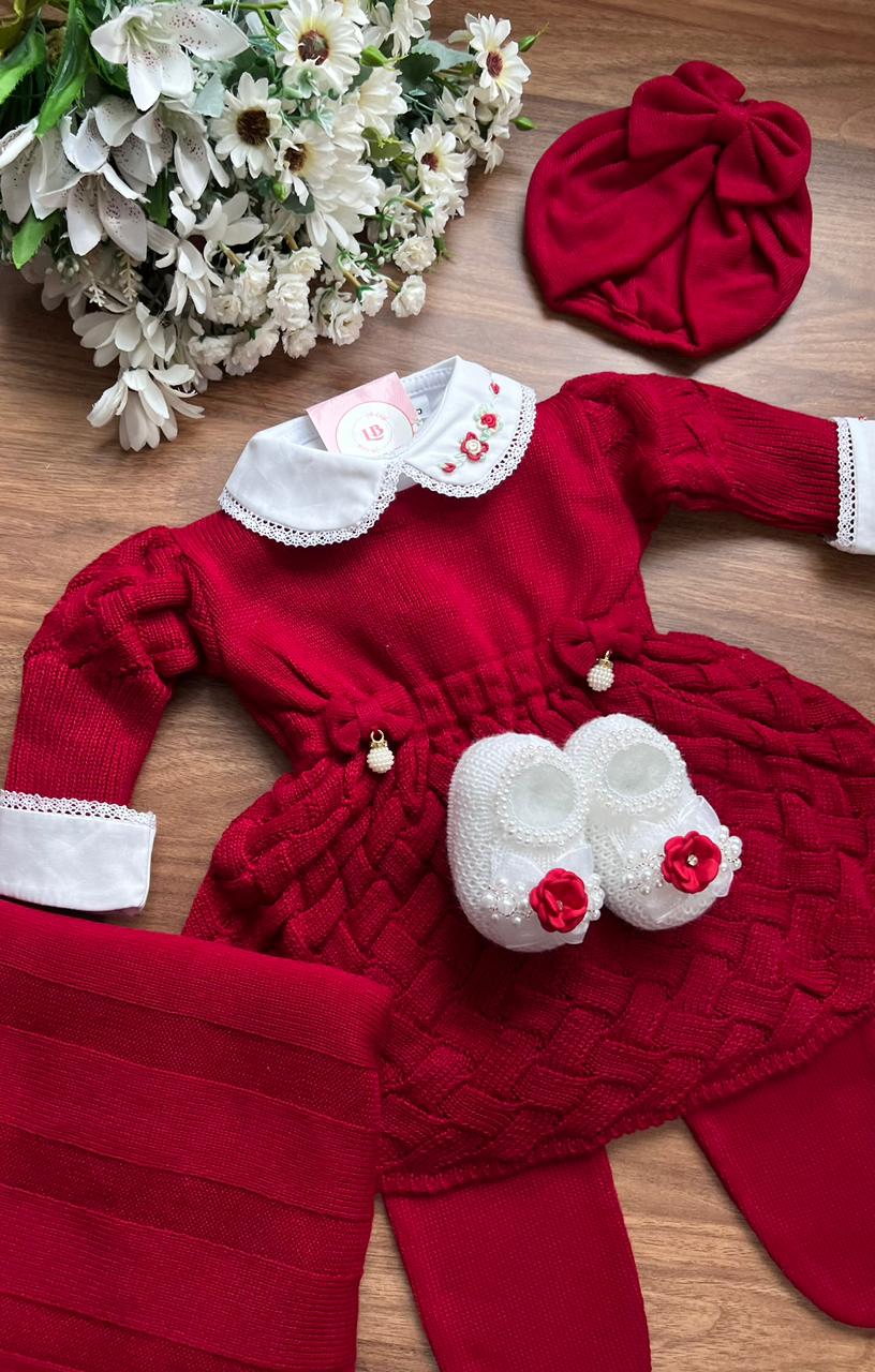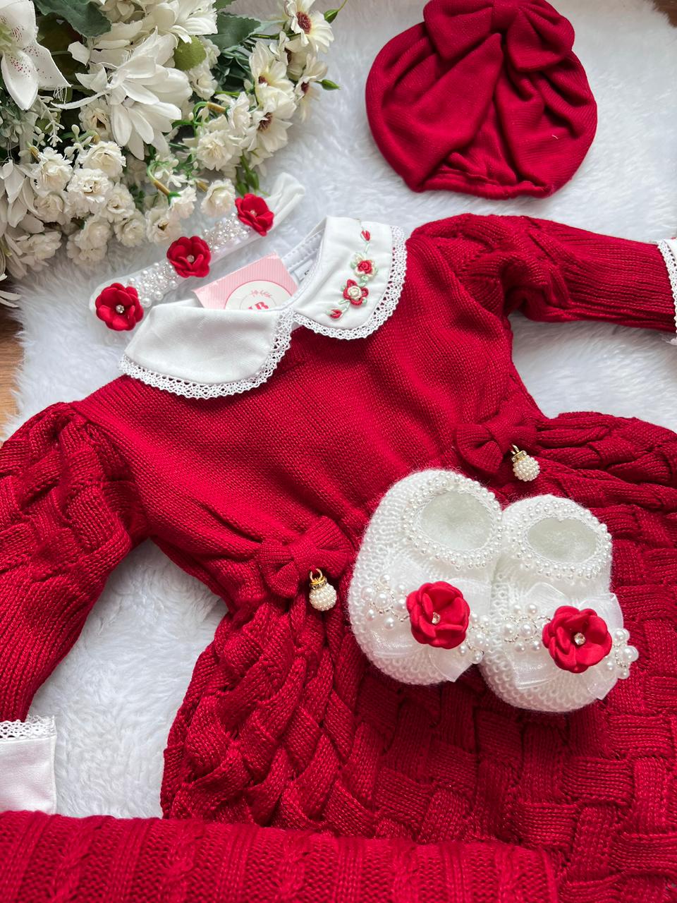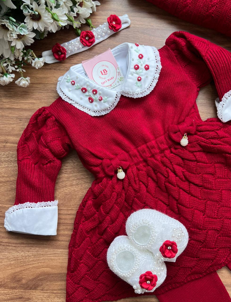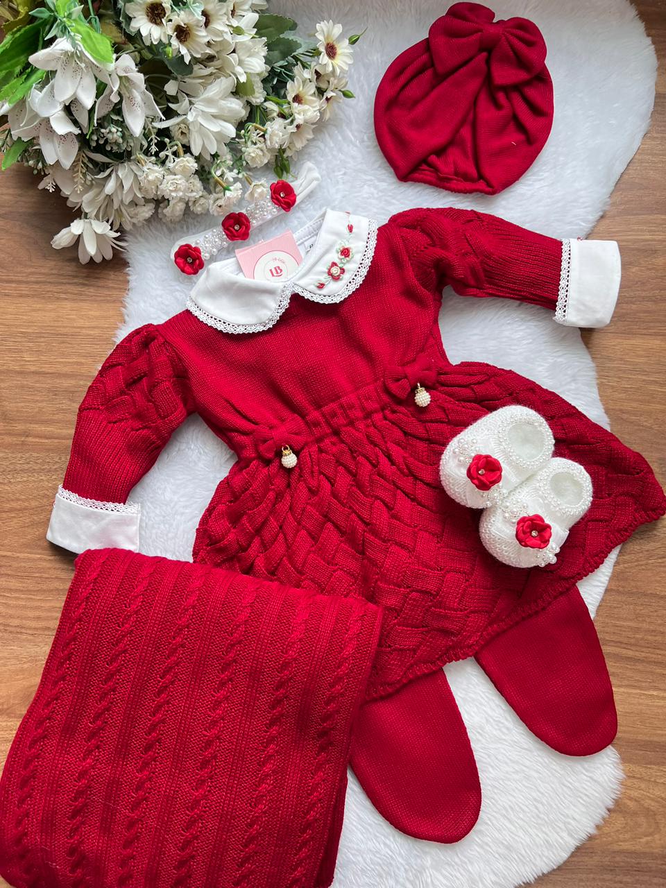 Nossa saída de maternidade é ideal para receber seu bebê com estilo e conforto. Tamanho único, veste bebês de 0 a 2 meses. O kit é composto por 3 peças, não acompanha o body (renda gola e punho fazem parte do body).