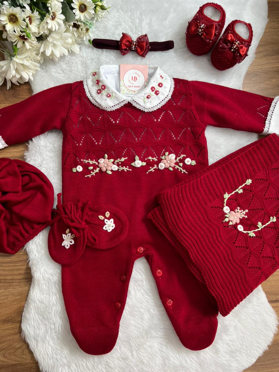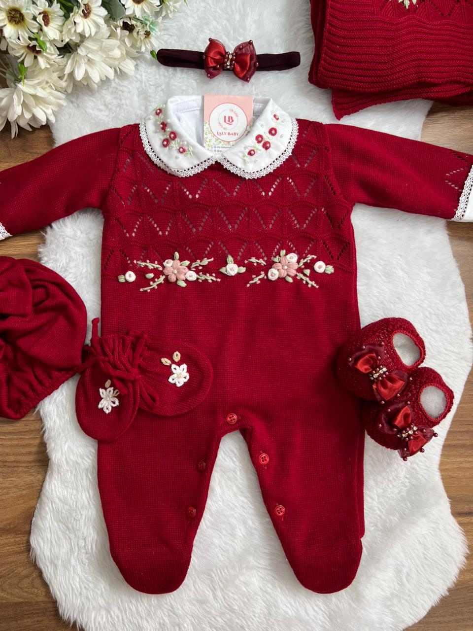 Nossa saída de maternidade é ideal para receber seu bebê com estilo e conforto. Tamanho único, veste bebês de 0 a 2 meses. O kit é composto por 2 peças, não acompanha o body (renda na gola e punho fazem parte do body).