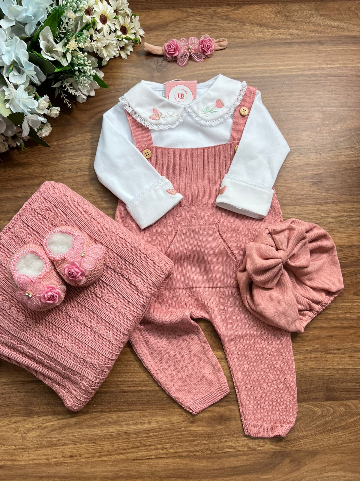 Nossa saída de maternidade é ideal para receber seu bebê com estilo e conforto. Toda em tricot super macio com fio antialérgico (100% acrílico). Tamanho único, veste bebês de 0 a 2 meses. O kit é composto por 2 peças, não acompanha o body.