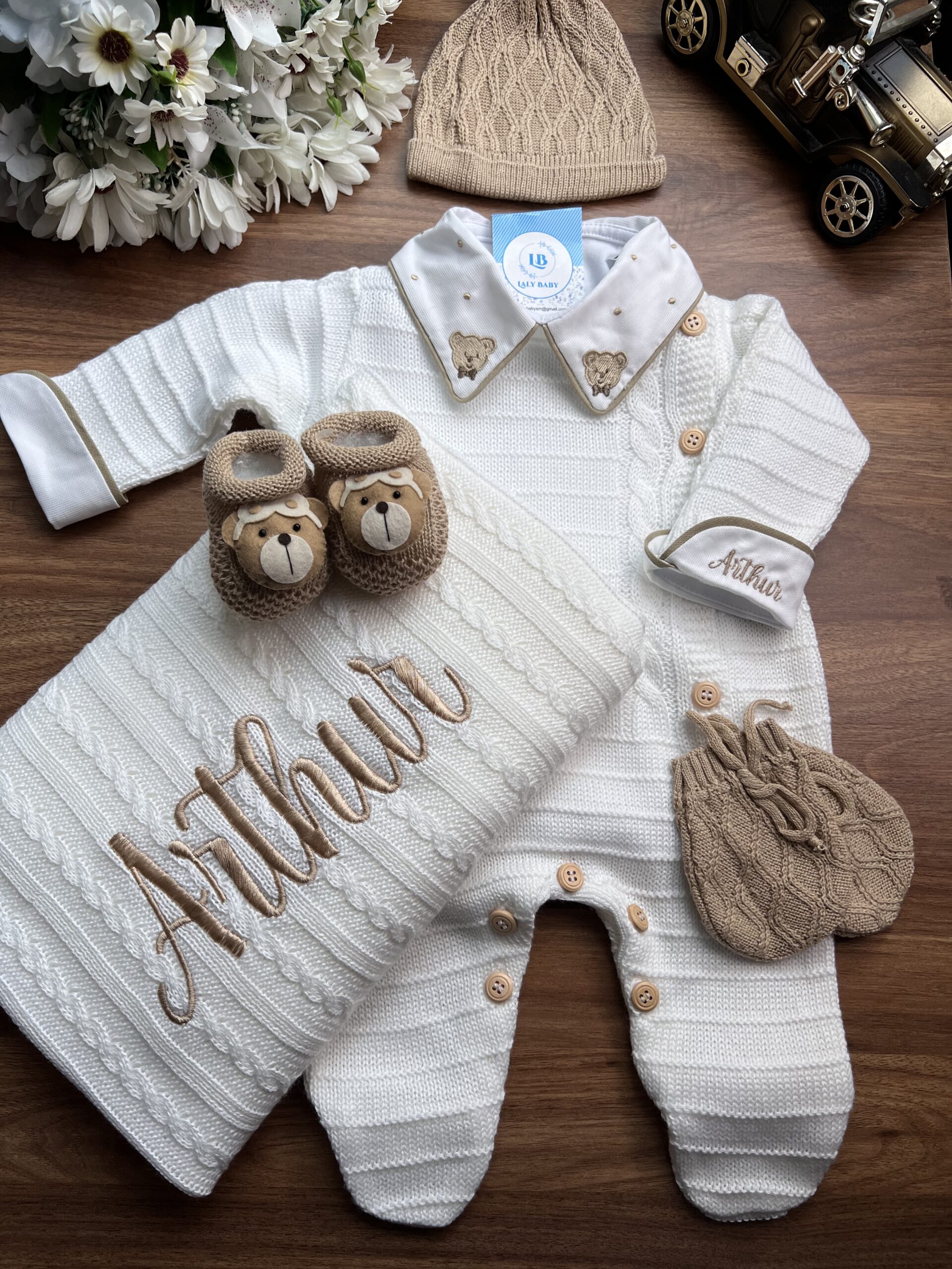 Nossa saída de maternidade é ideal para receber seu bebê com estilo e conforto. Toda em tricot super macio com fio antialérgico (100% acrílico). Tamanho único, veste bebês de 0 a 2 meses. O kit é composto por 2 peças, não acompanha o body (detalhe gola e punho fazem parte do body).