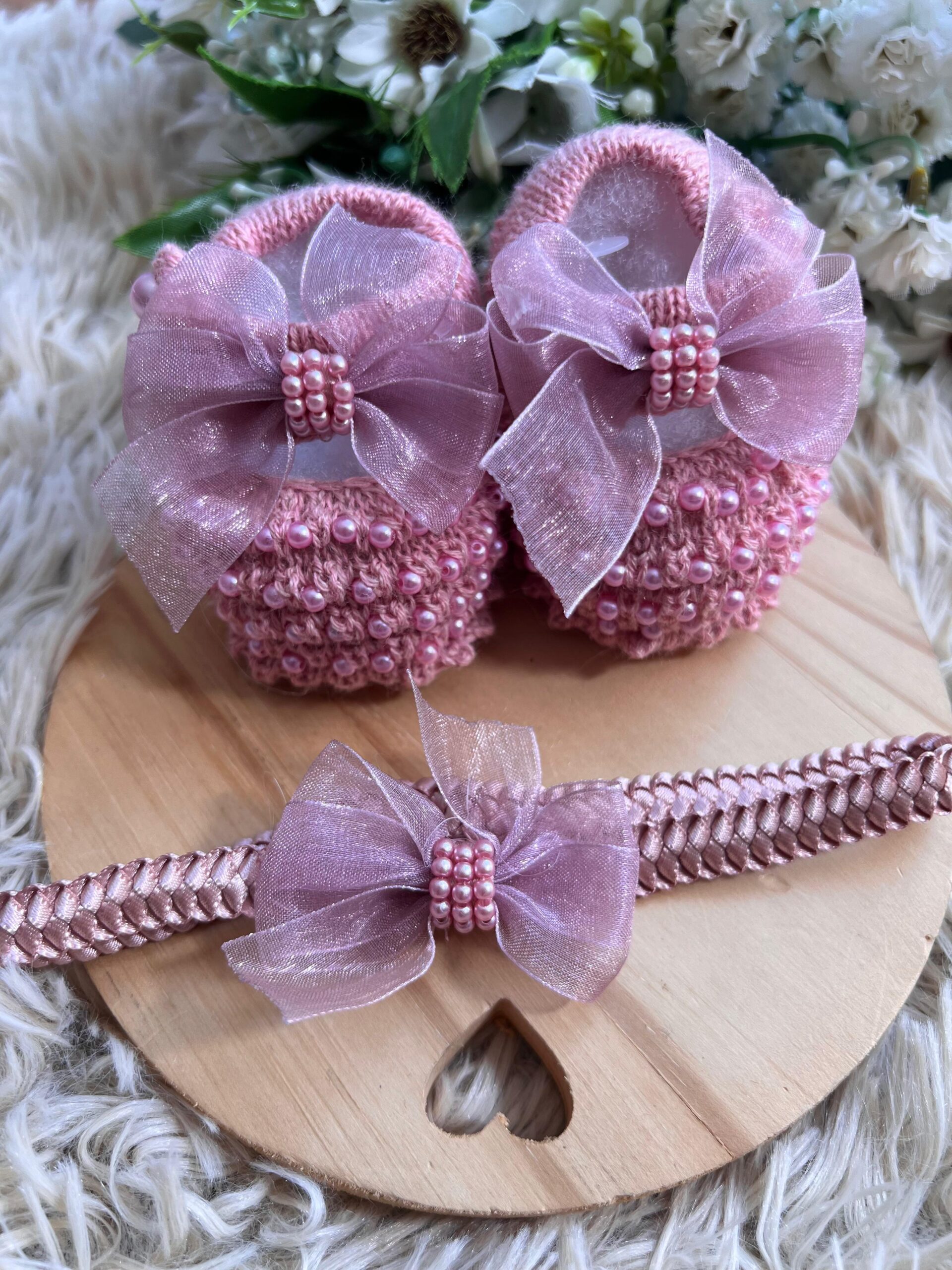 Nosso sapatinho é ideal para receber seu bebê com estilo e conforto. Todo em tricot super macio com fio antialérgico (100% acrílico). Tamanho único, voltado para recém nascidos.