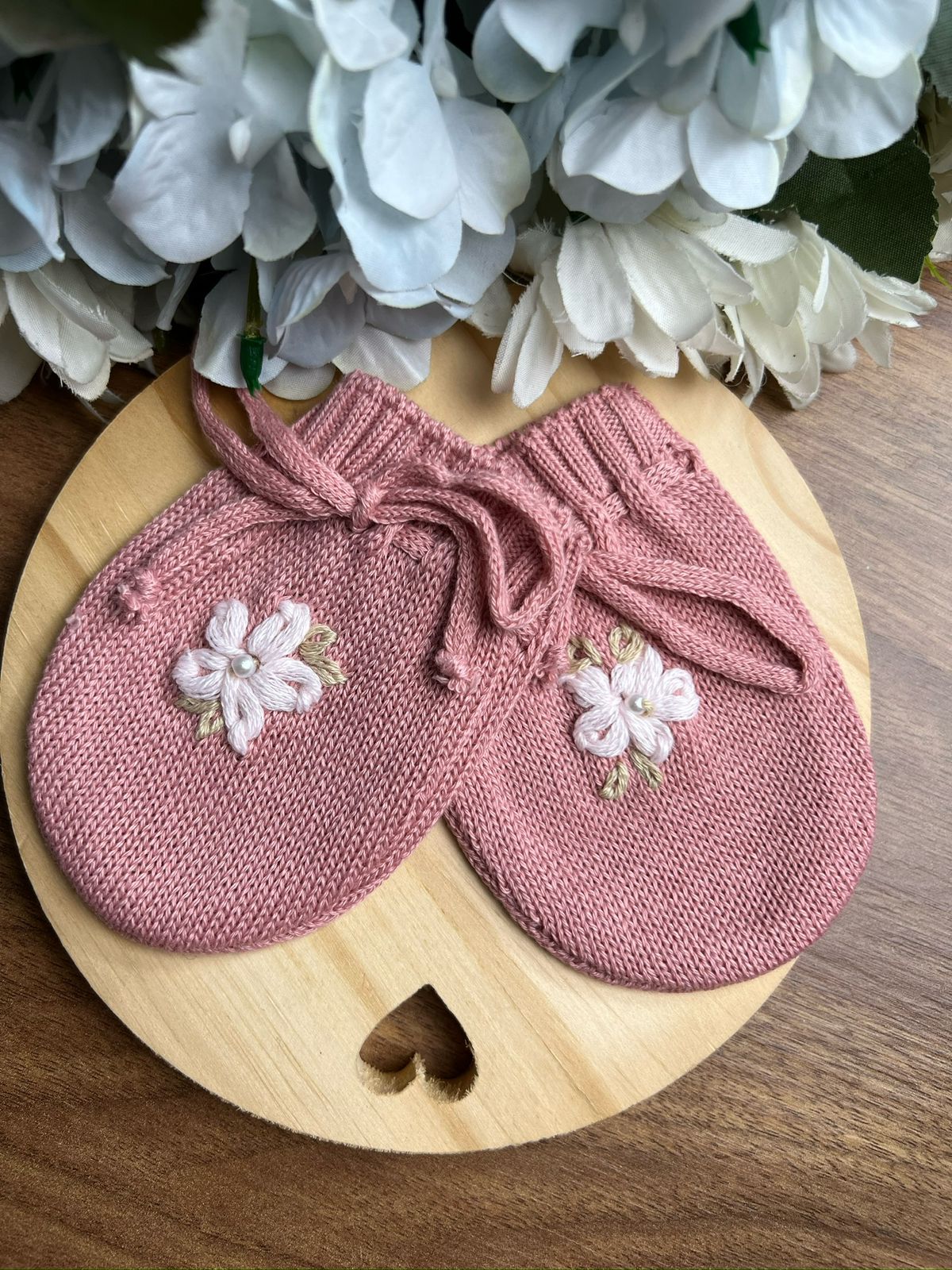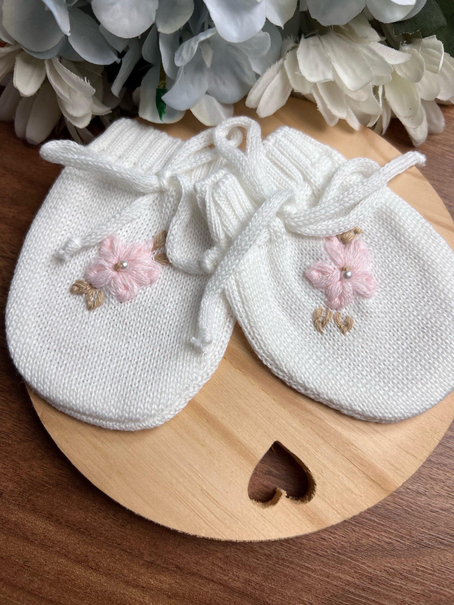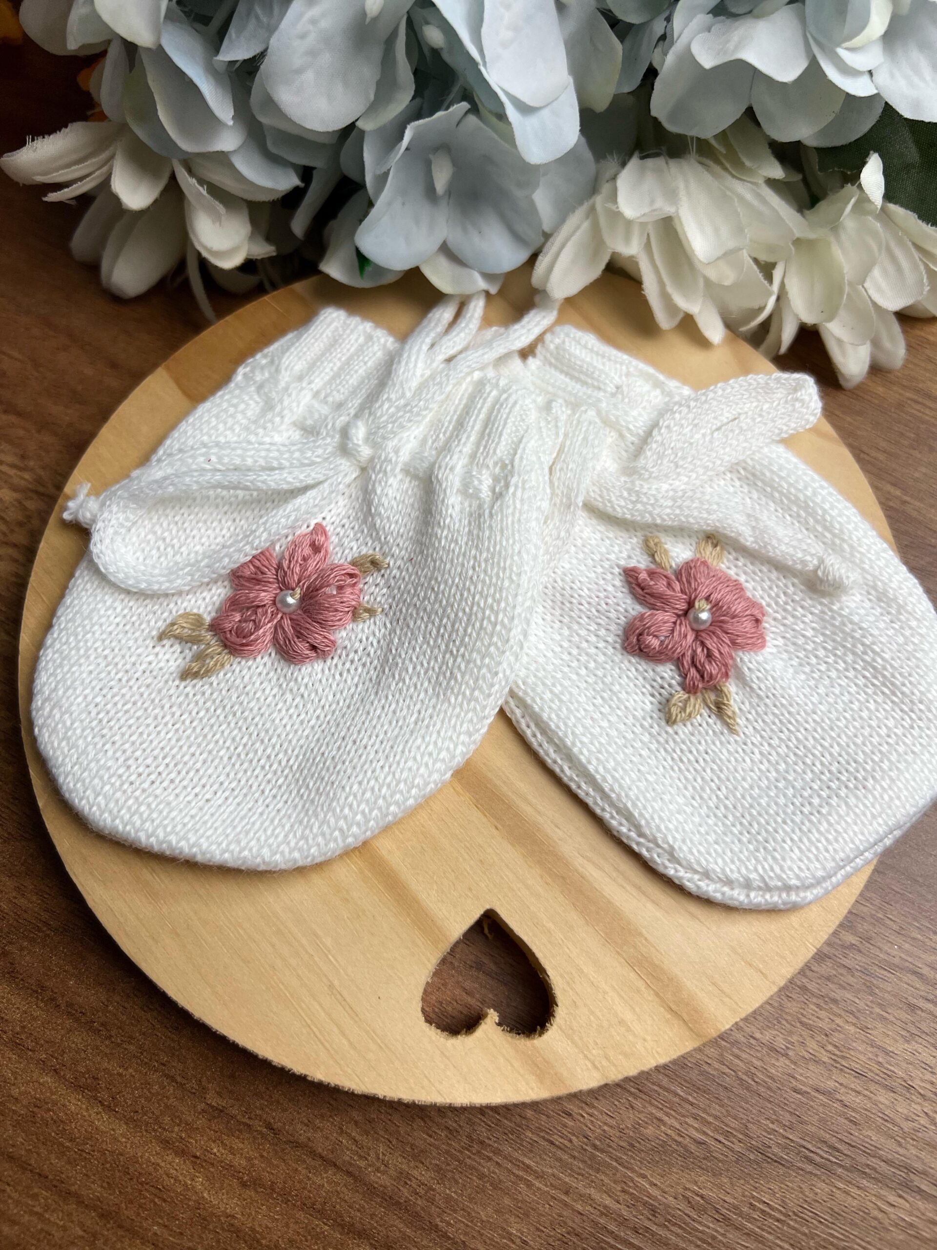 Kit Luvas com Bordado à mão – Rosê