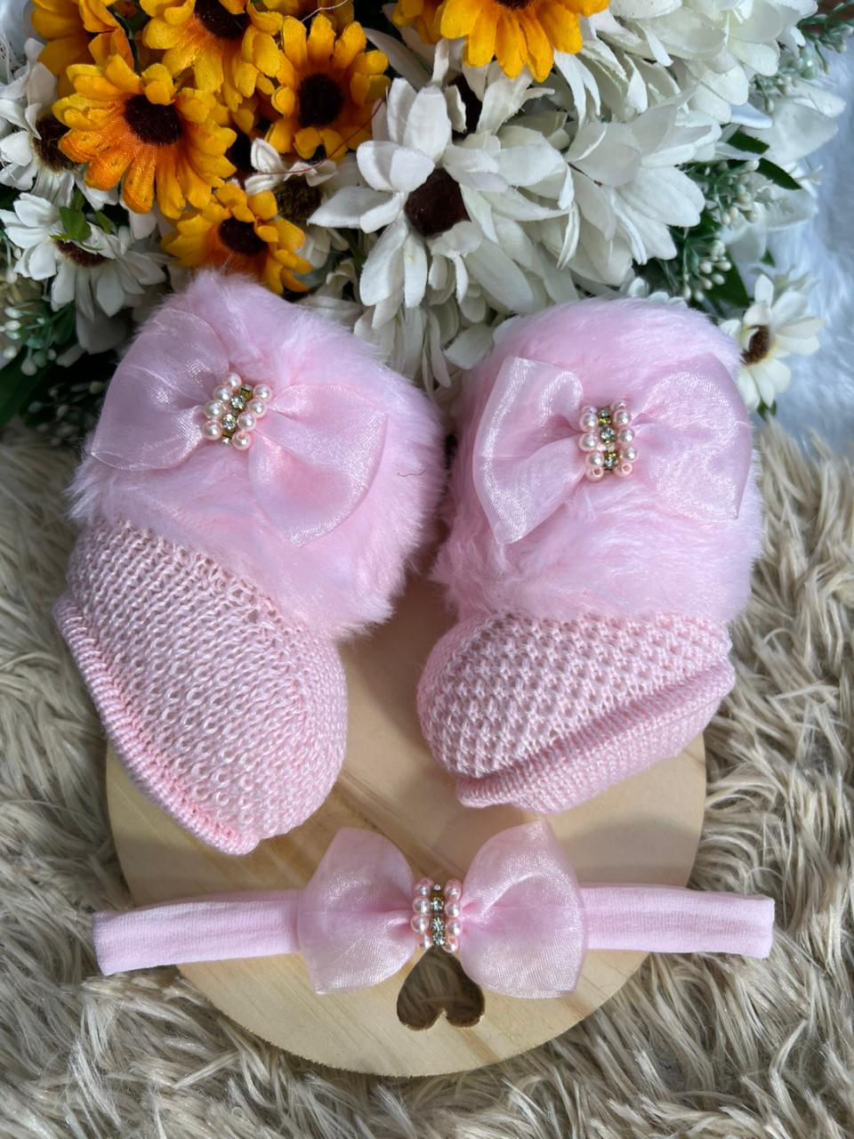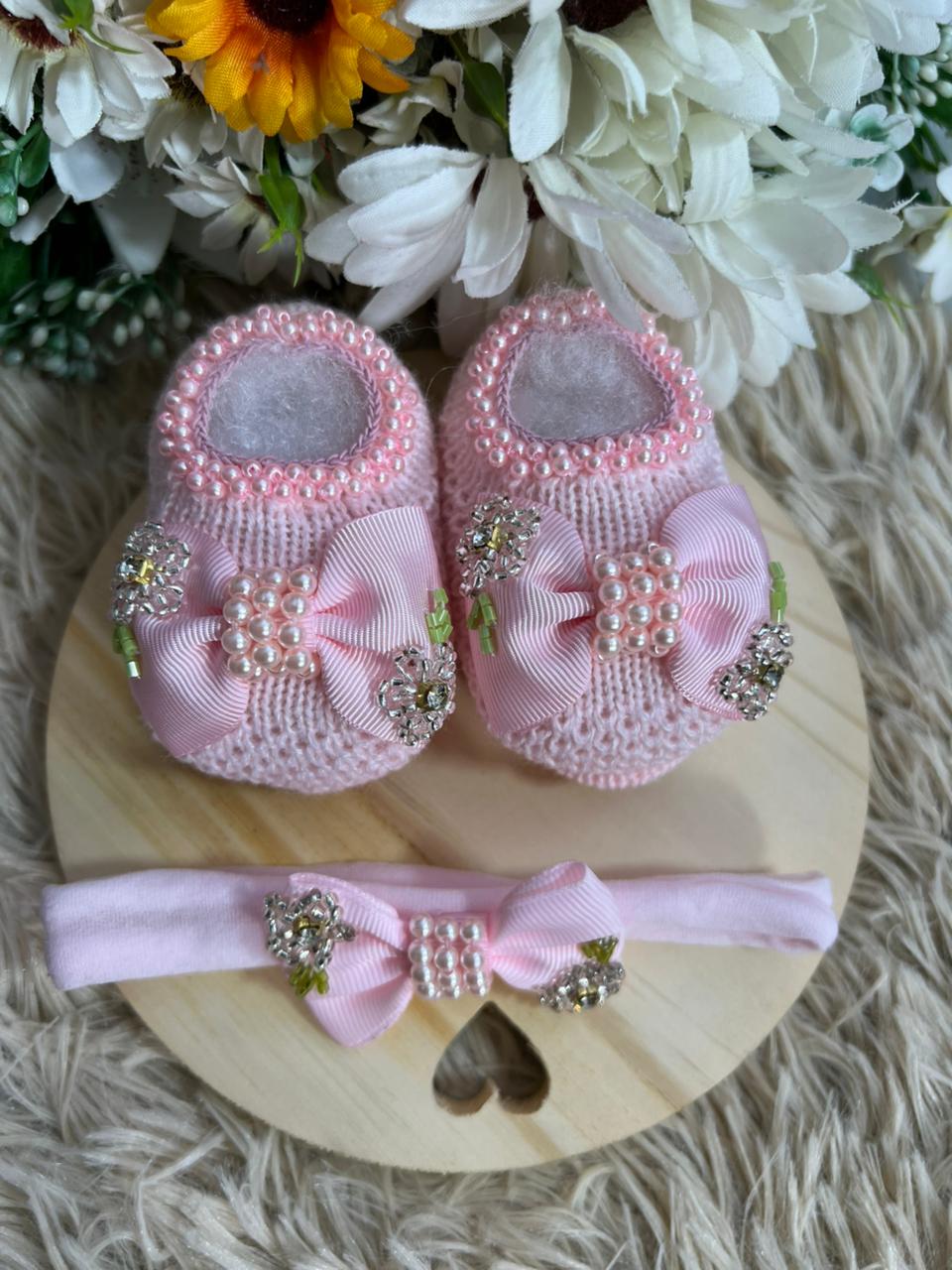 Botinha e Faixinha Rosa Bebê