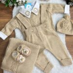 Nossa saída de maternidade é ideal para receber seu bebê com estilo e conforto. Toda em tricot super macio com fio antialérgico (100% acrílico). Tamanho único, veste bebês de 0 a 2 meses. O kit é composto por 3 peças, não acompanha o body (renda na gola e punho fazem parte do body).